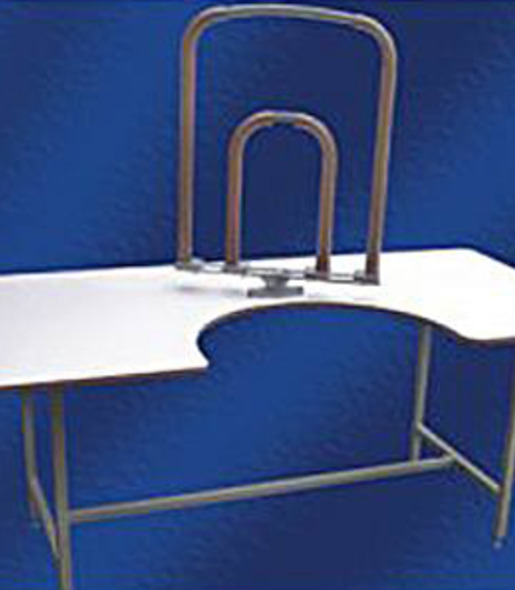 Mesa em MDF revestido, estrutura em aço com pintura epoxi e regulagem de altura.